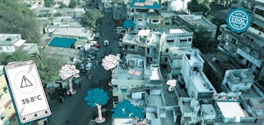 Longer, more intense heat waves are becoming increasingly frequent due to climate change. In Ahmedabad, India, temperatures can reach a staggering 45°C putting citizens at risk of heat related health issues.